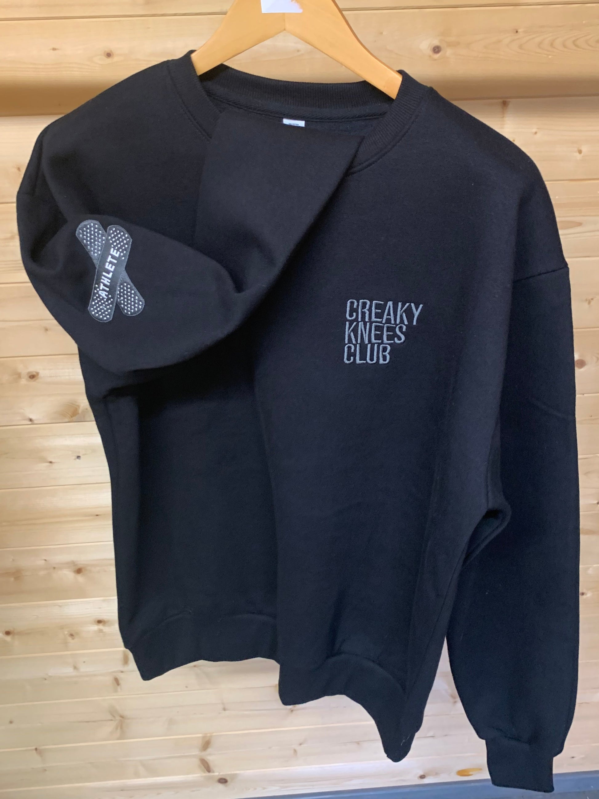Featuring our signature embroidered athlete patch on the sleeve and the iconic Creaky Knees logo front and centre.